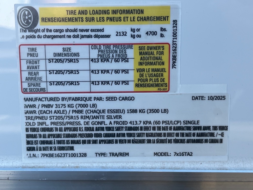 2025 Seed Cargo SC7X16TA2*