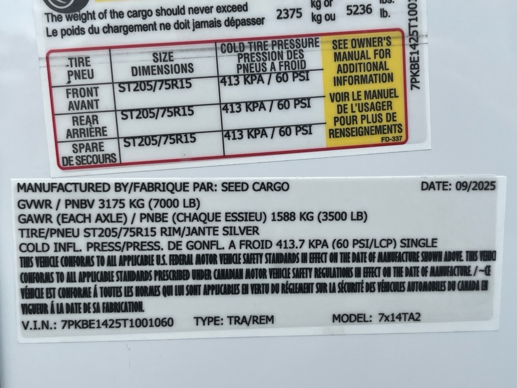 2026 Seed Cargo 7X14TA2 DD