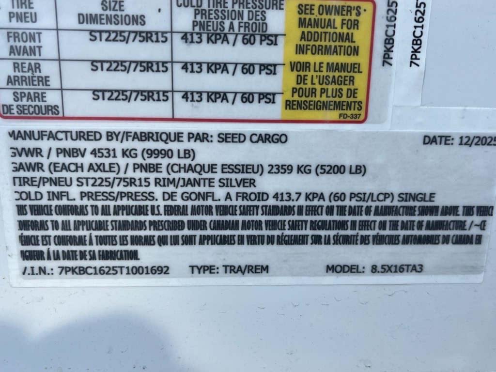 2026 Seed Cargo 8.5X16TA3*