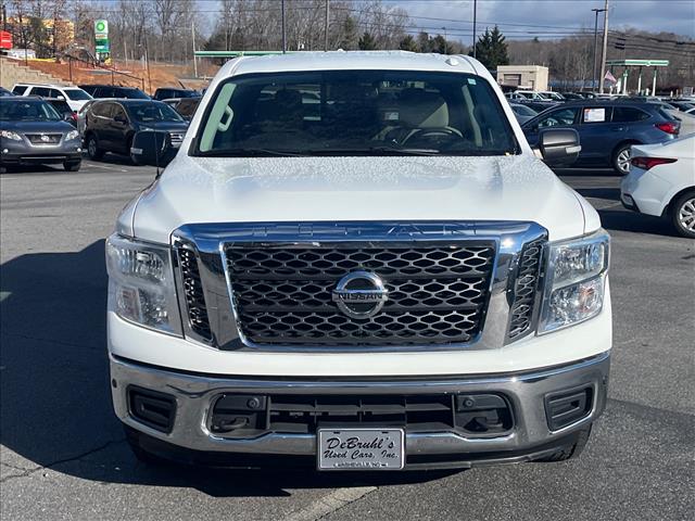 This vehicle is a 2018 Nissan Titan SV Crew Cab 4x4 with a 5.6 liter 8 cylinder engine, fuel injected and a glacier white exterior. It has driven 113,034 miles and has a beige interior with a crash test rating of 4 out of 5 stars. It also has many features such as touch screen display, Bluetooth audio connection, blind spot sensor, hill start assist, part time four wheel drive, navigation system with voice recognition, navigation with touch screen display, Bluetooth phone connectivity, and more. This car has been meticulously maintained and has a carfax report available for your review. With an impressive fuel economy of 15 mpg in the city and 21 mpg on the highway, this car is sure to save you money at the pump while still providing you with the power you need to get the job done. DeBruhls Used Car Superstore is the largest independent auto dealer in WNC! We offer a full range of financing with our guarantee credit approval, everyone is approved here.