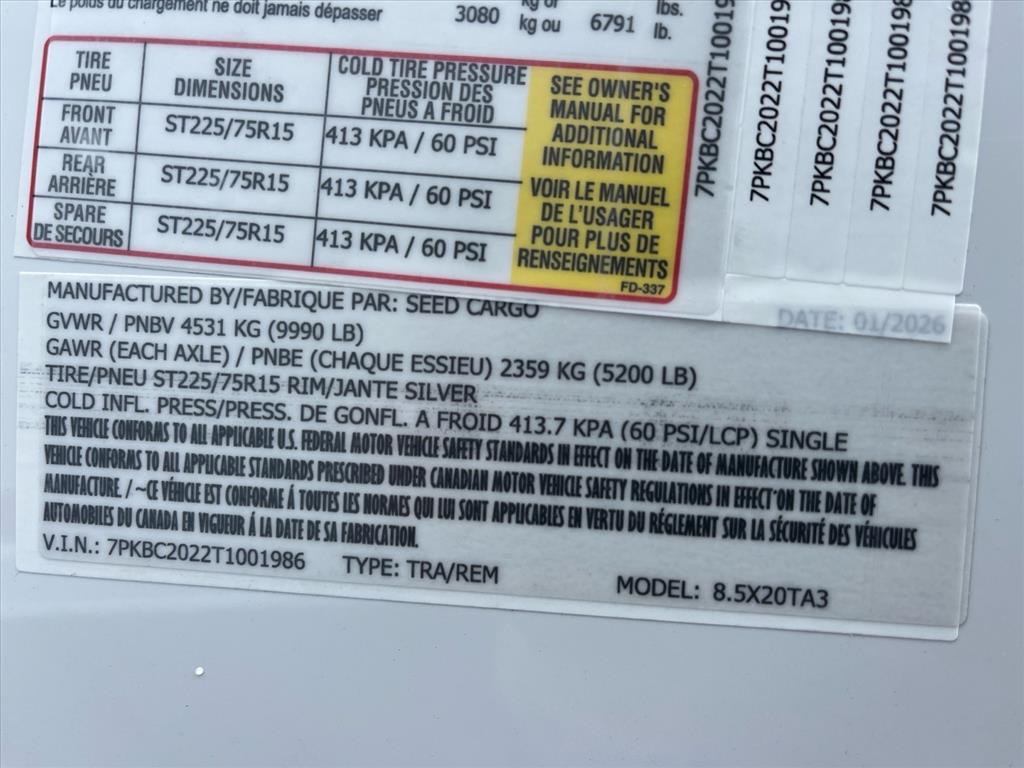 Thank you for viewing our 2026 Seed Cargo 8.5X20TA3* for sale in Asheville, NC. If you have any specific questions please contact us. We will be glad to help in any way we can!