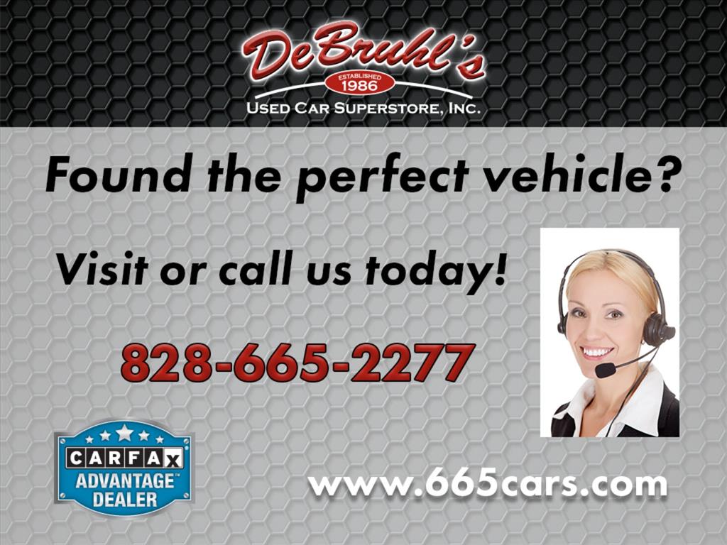 DeBruhl's Used Cars attempts to provide accurate information on the inventory item listed above. The actual equipment may vary. Please confirm all vehicle options, accessories and prices with a sales associate to assure accuracy. This information is provided without representations or warranties of any kind, either expressed or implied. Prices do not include additional fees such as government fees and taxes, title and registration fees, finance charges, dealer document preparation fees, and emission testing
