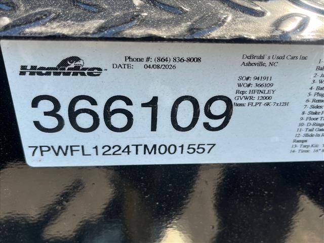 Thank you for viewing our 2026 HAWKE 7X12 12K for sale in Asheville, NC. If you have any specific questions please contact us. We will be glad to help in any way we can!